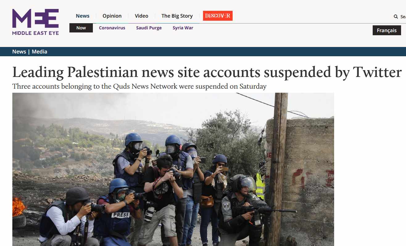 Twitter has closed the Palestinian newspaper Al Quds’ accounts and that of numerous Palestinian activists as well as that of Hezbollah, a Lebanese government party that has repelled Israel’s army 14 years ago and other Arab groups.