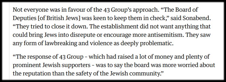 The Board of Deputies has always opposed physical opposition to fascist anti-Semitism whilst at the same time condemning all opposition to Zionism and Israeli Apartheid
