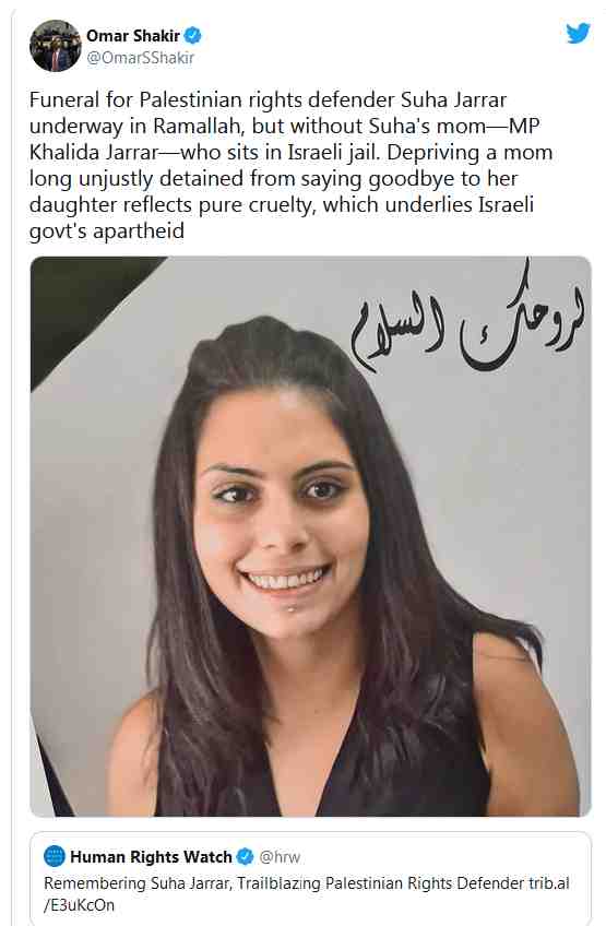 ‘Depriving a mom long unjustly detained from saying goodbye to her daughter reflects pure cruelty, which underlies Israeli govt’s apartheid’