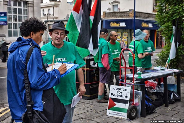 | Despite repeated threats Mike on the right continues to come down from London to give support to the Palestinians |