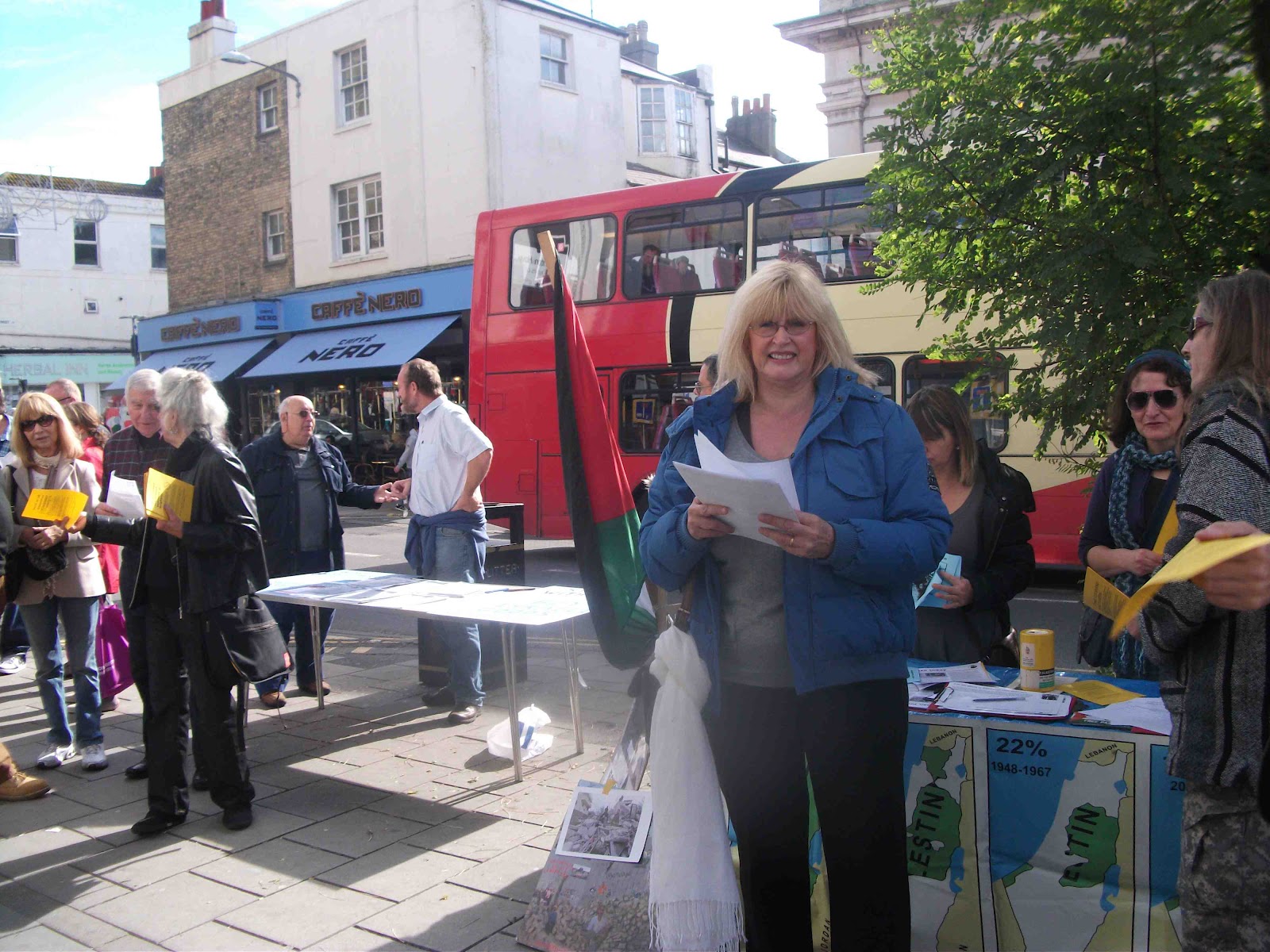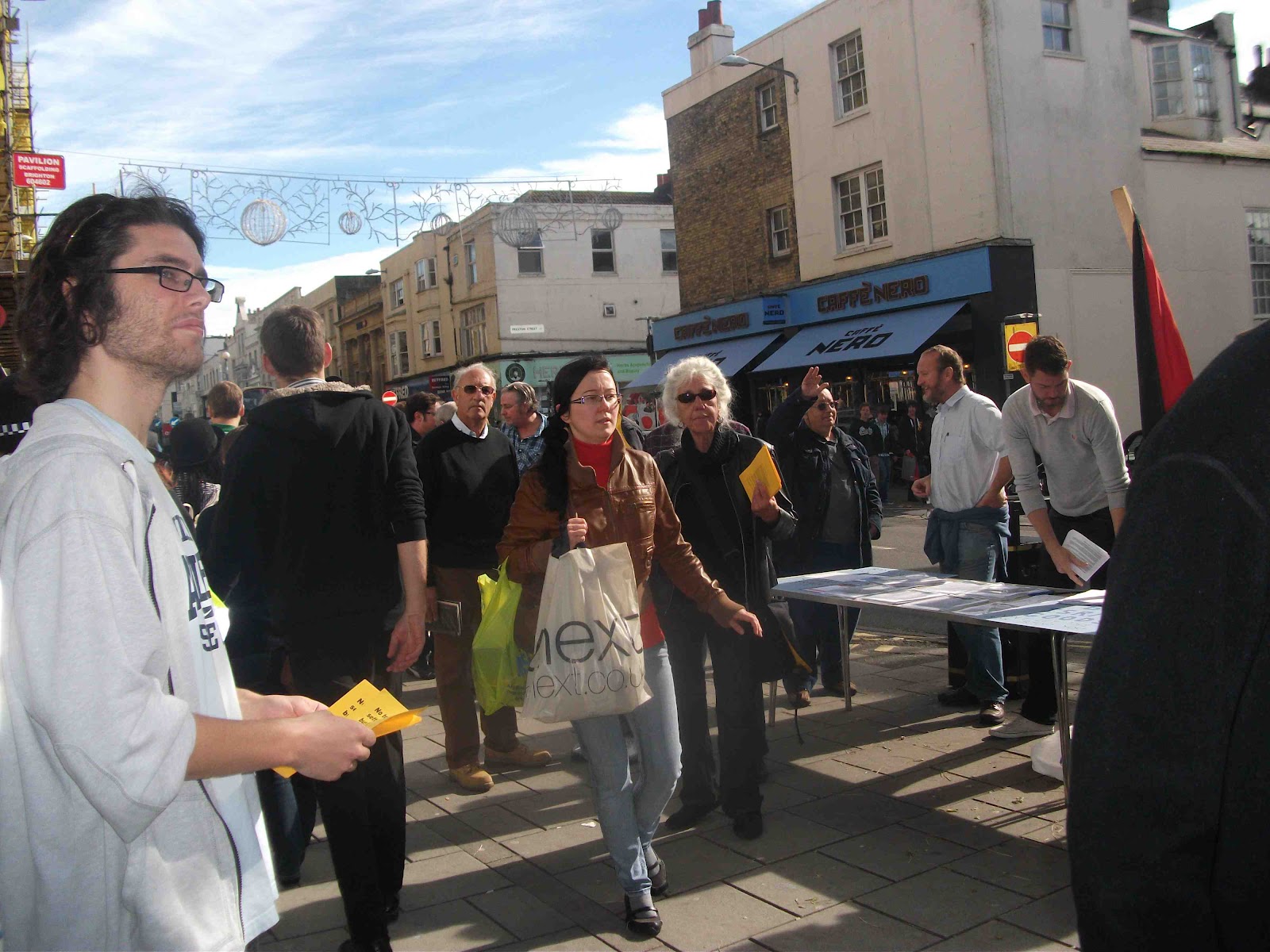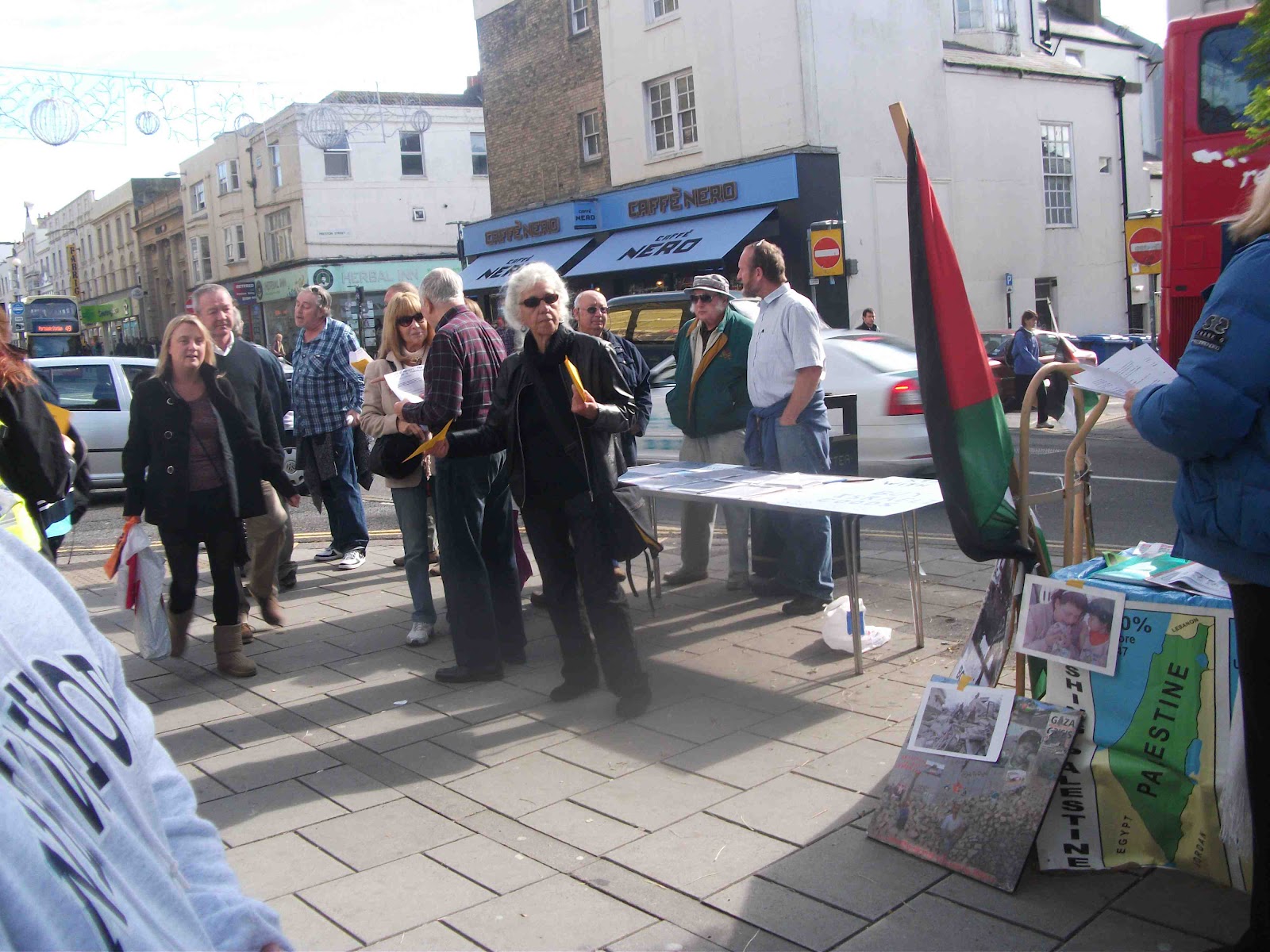The Zionists face a dilemma. The more people they mobilise, the more we mobilise and the fewer customers who want to go even nearer the shop. As it is virtually everyone who passed expressed their disgust at the shop’s presence and we were inundated with support. The Zionists decided 3 weeks ago to set up a stall do and what a pathetic affair it is. Manned by thugs and Christian weirdos, it serves no obvious purpose.
