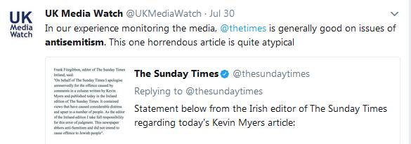 printed his anti-Semitic comments like a ton of bricks. Well I’m afraid you are wrong. UKMedia Watch tweeted