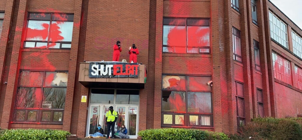 Israel’s UK-based arms company Elbit systems, woke up to two of their key factories smashed, sprayed and painted red by Palestine Action on the morning of the Balfour Declaration anniversary. Simultaneously, activists are blockading Elbit’s other subsidiary, UAV Engines in Shenstone, forcing three of their weapons factories to shut down.