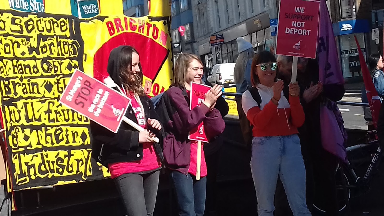 At the rally today at the Clock Tower in Brighton’s centre there was a good turnout with representatives from UCU, who themselves have been on strike recently, CWU, also balloting for strike action against Royal Mail, UNISON, Unite and the Trades Council. It was unfortunate that despite being advertised as speaking Kemptown Labour MP Lloyd Russell-Moyle wasn’t there and nor was Caroline Lucas, the Pavilion Green MP. No one of course would have expected Peter Kyle, ‘Labour’ MP for Hove to attend since he is to the right of most Tory MPs.