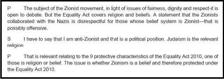 is not the protected characteristics of Zionism’s believers which is at stake