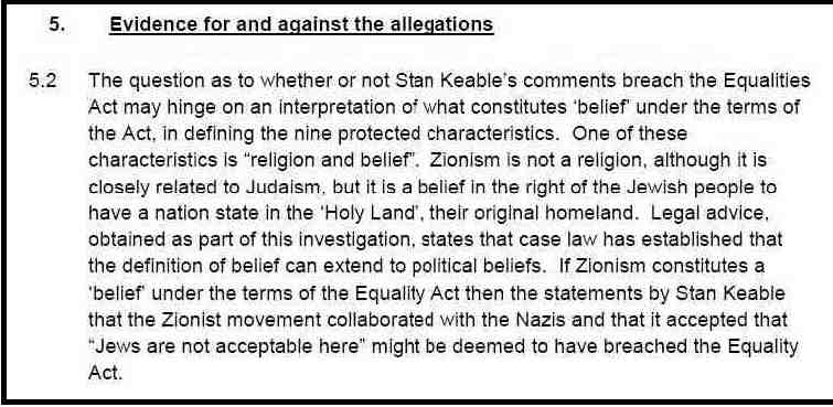 Equality Act then the statements by Stan Keable that the Zionist movement