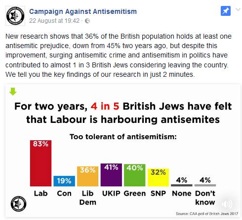 is happy to hype and inflate the amount of genuine anti-Semitism in Britain. Their Anti-Semitism