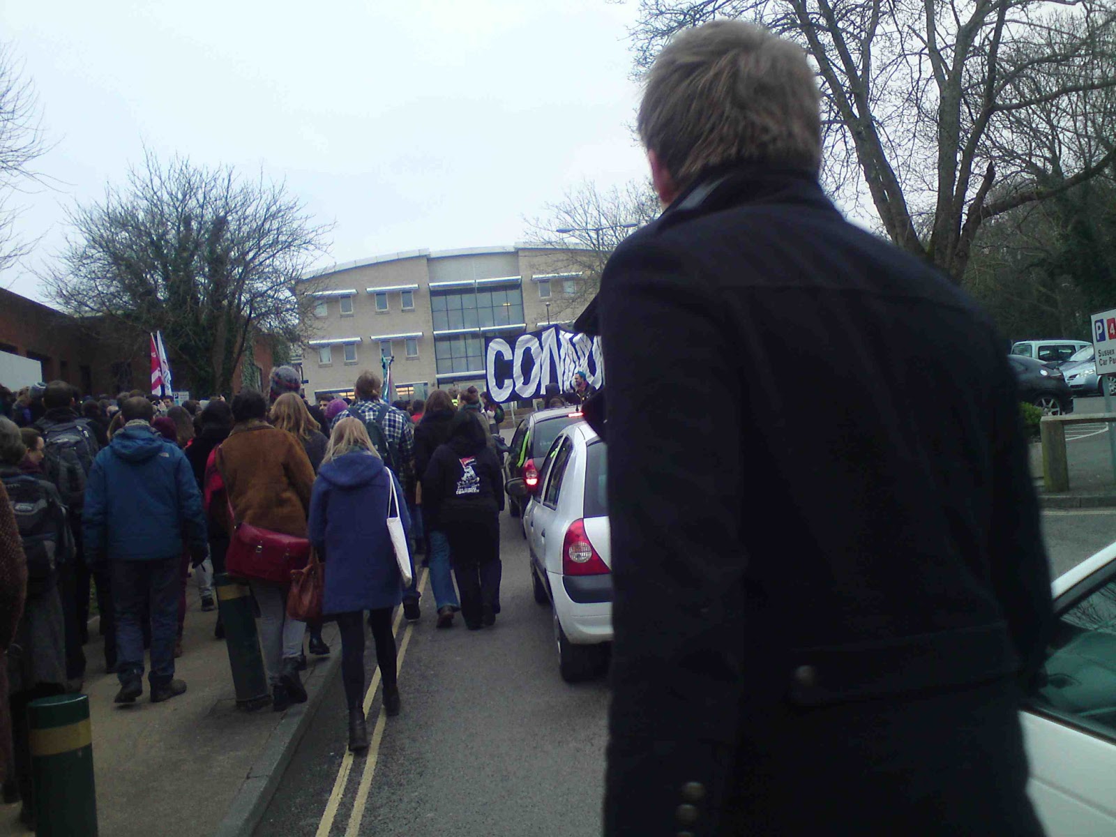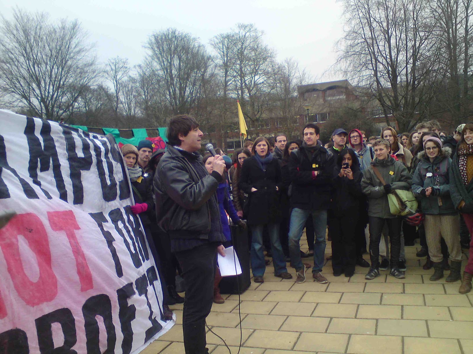 However I’m pleased to say that last week students went into occupation at Bramber House. After a demonstration called on Wednesday in the main square 1,000 students marched to Bramber House, where a group of students were holding out, and swept past security.