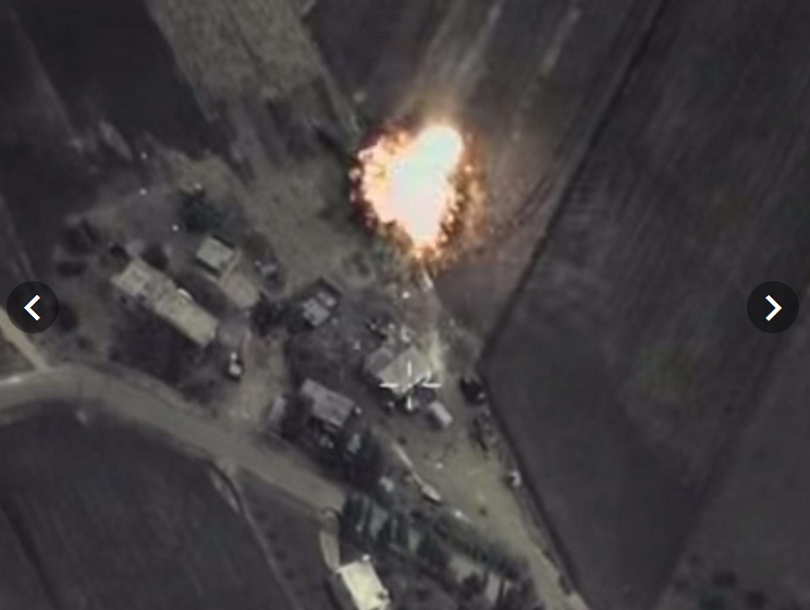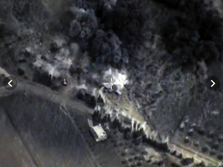 | A video grab taken from the footage made available on the Russian Defence Ministry’s official website, purporting to show an airstrike in Syria |