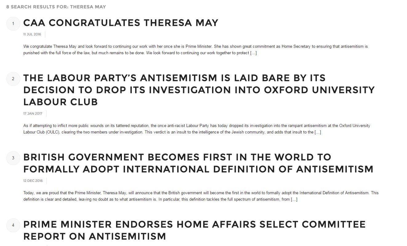 | The CAA has 8 entries for Theresa May – Britain’s racist anti-refugee Prime Minister – all of them complementary |