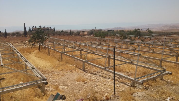 | Palestinian solar panels confiscated by Israel in West Bank village of Jubbet Adh-Dhib, June 2017. Comet-ME |