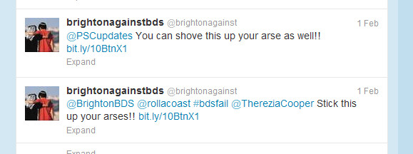 In one exchange on twitter, the JDL asks if Sussex Friends of Israel are on twitter. On being told that they will be in a couple of weeks, the JDLer tweets back ‘excellent’ and then up pipes Cobbs ‘and when we are, watch out all Jews/Israel haters.’ The JDL tweet back ‘can’t wait’ and Foxtrot, a JDL supporter chimes in ‘damn right!’ There isn’t the slightest indication that Cobbs was disturbed by this prospect. In his role as spokesperson and organiser for Sussex Friends of Israel,