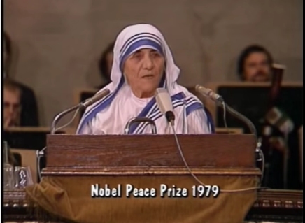 | When receiving the Nobel Peace Prize St. Theresa singled out abortion as the greatest evil in the world |