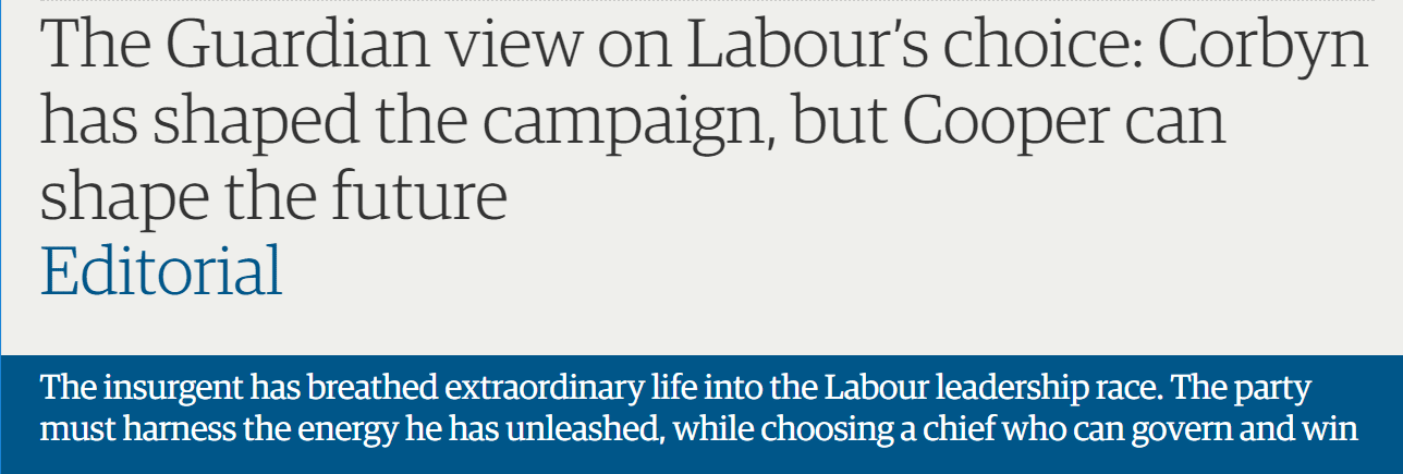 | Yvette Cooper, New Labour’s war mongering former home office minister was the Guardian’s choice for leader |