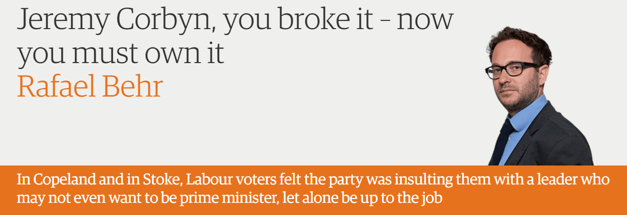 One of the qualities of these empty rhetoricians is their pomposity. Raphael Behr is the most pompous of all in a field with stiff competition. In his Jeremy Corbyn, you broke it – now you must own it