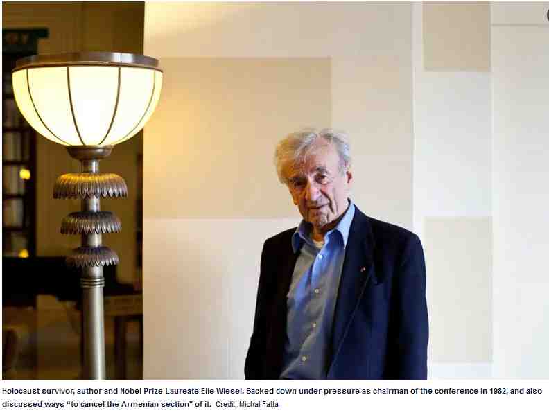 After Wiesel pulled out he shared internal information about the conference with the Foreign Ministry. Wiesel met with Naphtali Lau-Lavie, Israel’s general consul in New York and discussed ways “to cancel the Armenian section” of the conference. One idea being “to prevent such a discussion in the plenum” and to transfer it to “workshops” on the sidelines, so it would not be given publicity.