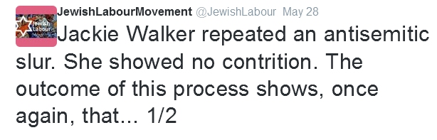 | The JLM sets the tone, refusing to accept Jackie Walker is not anti-Semitic and then lays the ground for racist Zionist trolls |