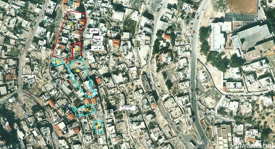 | Area in red shows 5 acres in middle Silwan targetted by Ateret Cohanim |