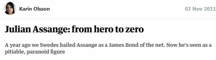 Below are just a few of the Guardian headlines that the excellent 5 filters website has compiled. There is also an excellent summary of the Guardian’s farrago of nonsense inAssange Arrest – Part 1: ‘So Now He’s Our Property’. As 5 Filters says, ‘If you haven’t already, it really is time to Dump the Guardian and support independent media instead.’ And I would say that if you are one of the million people reputed to be giving money to the Guardian to keep it from installing a pay wall, please give to more worthy causes. The Guardian is just a more sophisticated version of The Times.Twitter reactions to the Guardian’s campaign against Assange include: