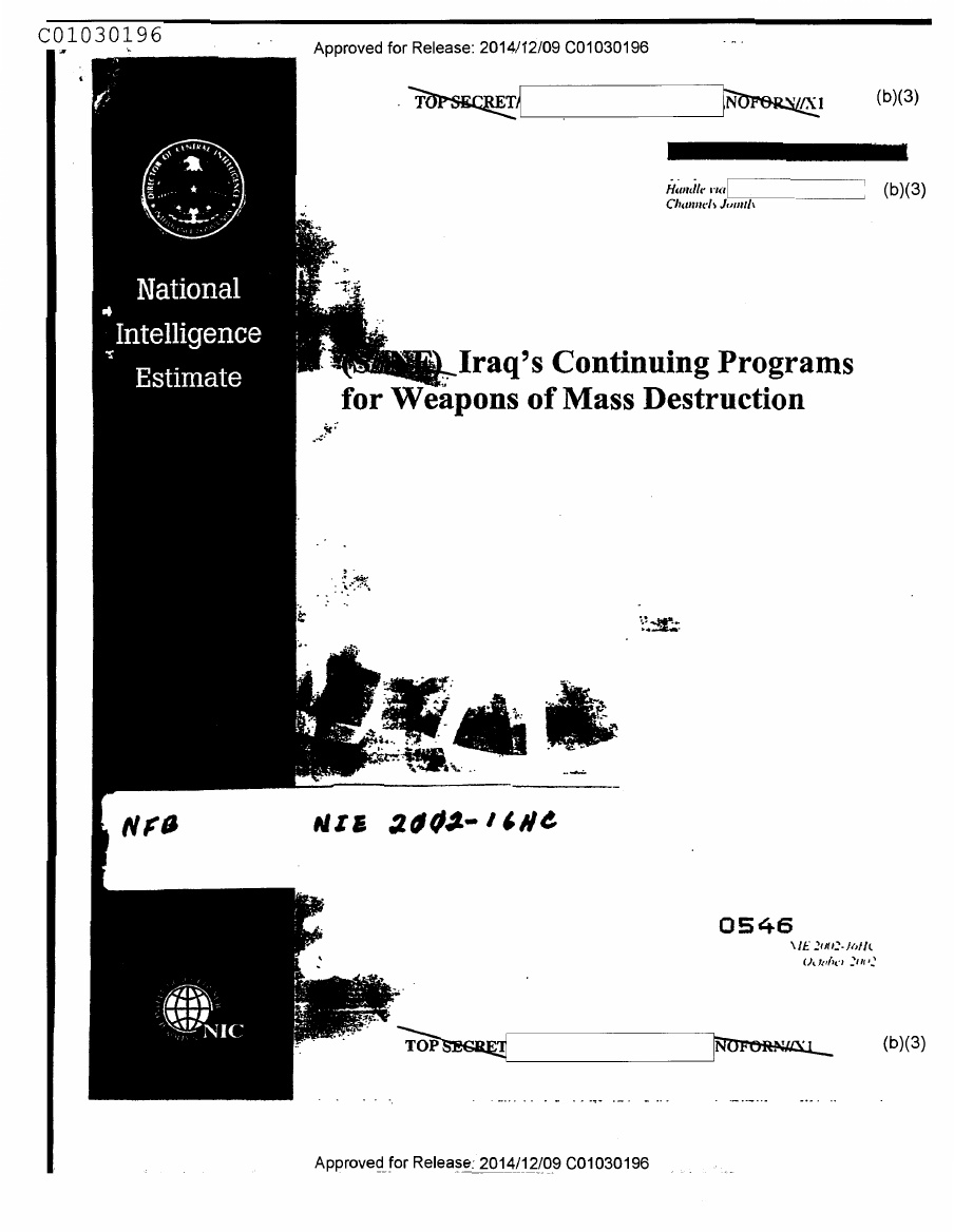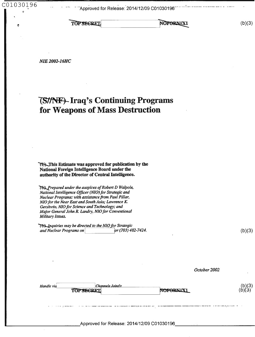 National Intelligence Estimate (NIE) that was used to justify the invasion