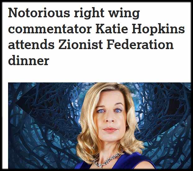 So of one thing you can be certain. If indeed Jackie and I were anti-Semites the Board of Deputies wouldn’t be in the slightest bit interested in us. Indeed if we were racist supporters of the Israeli state like Katie Hopkins we would be given special invitation to the Zionist annual dinner and be introduced to the Israeli Ambassador, war criminal Mark Regev.