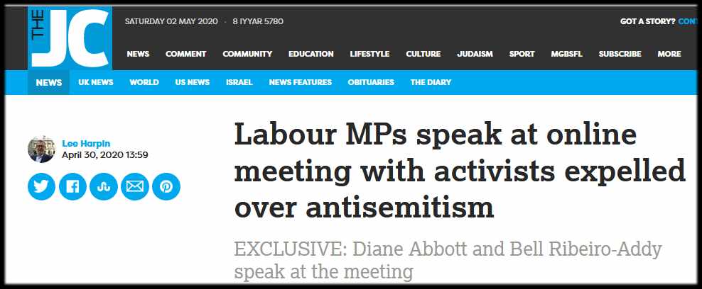 You really could not make it up! The Board of Deputies which has support of Israel hardwired into its constitution, demanded that Keir Starmer suspend 2 Black female MPs for the crime of having spoke in a meeting at which 2 Jewish anti-Zionists, Jackie Walker and Tony Greenstein, spoke.