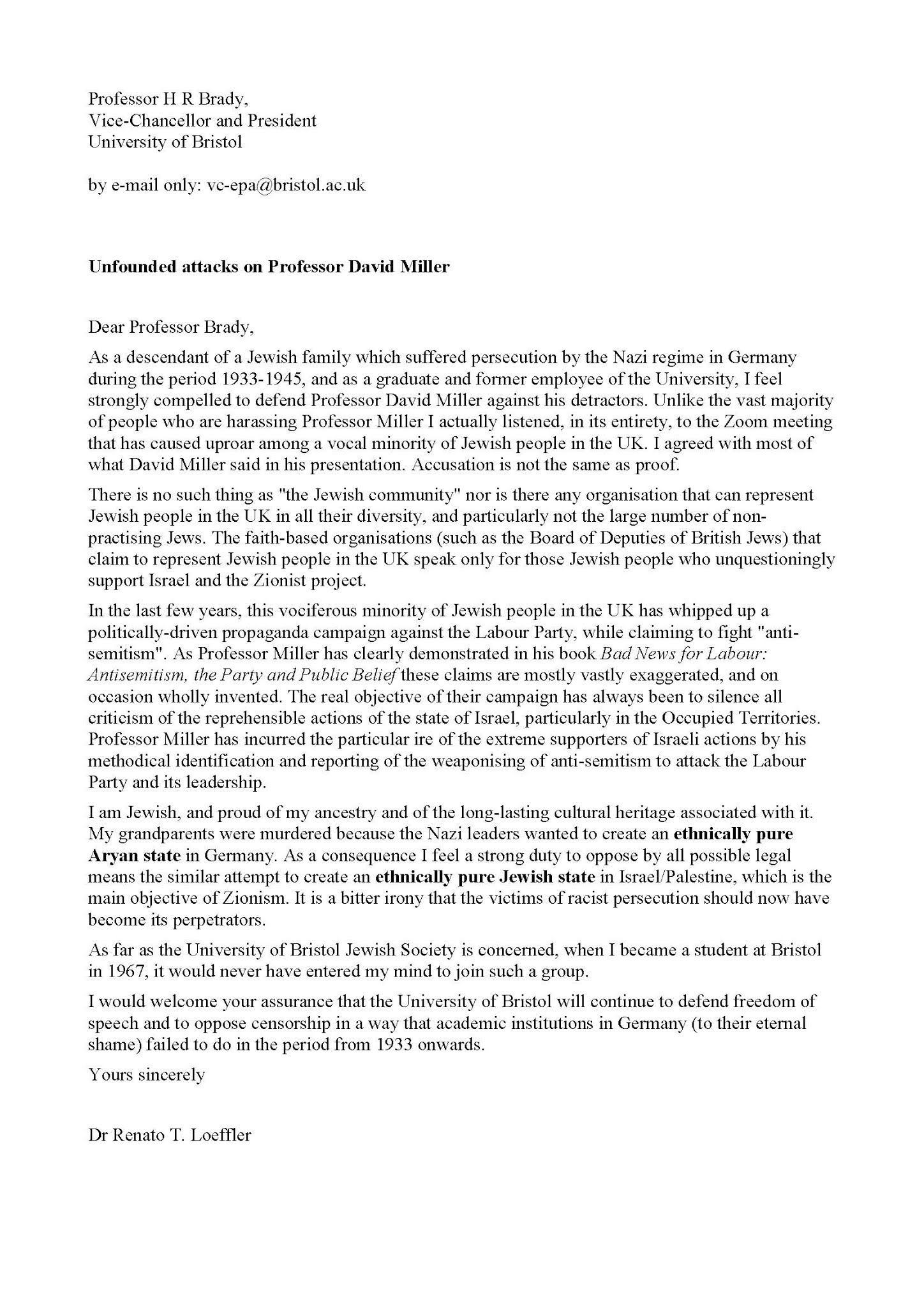 I hope therefore that PSC will write to the Vice-Chancellor of Bristol University, in addition to issuing a press statement. It would also be helpful if a petition I have launched in defence of David Miller could be publicised on PSC’s social media as a matter of some urgency.