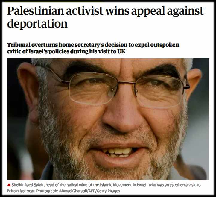 When PSC organised a tour for the Israeli Palestinian cleric Sheikh Raed Salah, in 2011, he was detained shortly after arriving in Britain. The Home Office used material that the Zionist Community Security Trust had given them, including a doctored poem, in which the words ‘we Jews’ had been inserted, as well as other ‘evidence’ in its attempt to deport Saleh. However the Upper Immigration Tribunal rejected the Home Office’s case and Professor Miller’s expert evidence played a key role in showing that the CST had submitted false evidence.