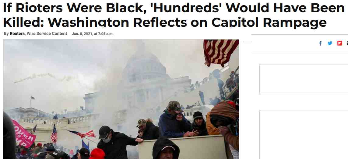 The invasion on Capitol Hill was certainly violent with one video showing a cop screaming in agony as he was crushed between a door and the wall. But just imagine if this had been say a crowd of Black Lives Matter supporters. Does anyone imagine that the riot cops would have gently pushed back? There would have been a bloodbath and Trump would have been the first to congratulate the police.