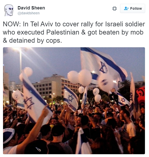 In Tel Aviv to cover rally for Israeli soldier who executed Palestinian &