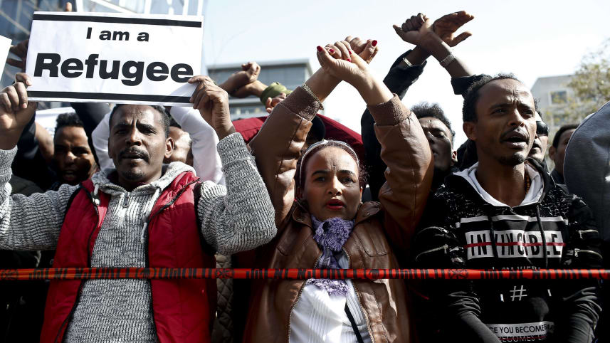 asylum seekers protesting outside the Rwandan Embassy in Herzliya, Israel,