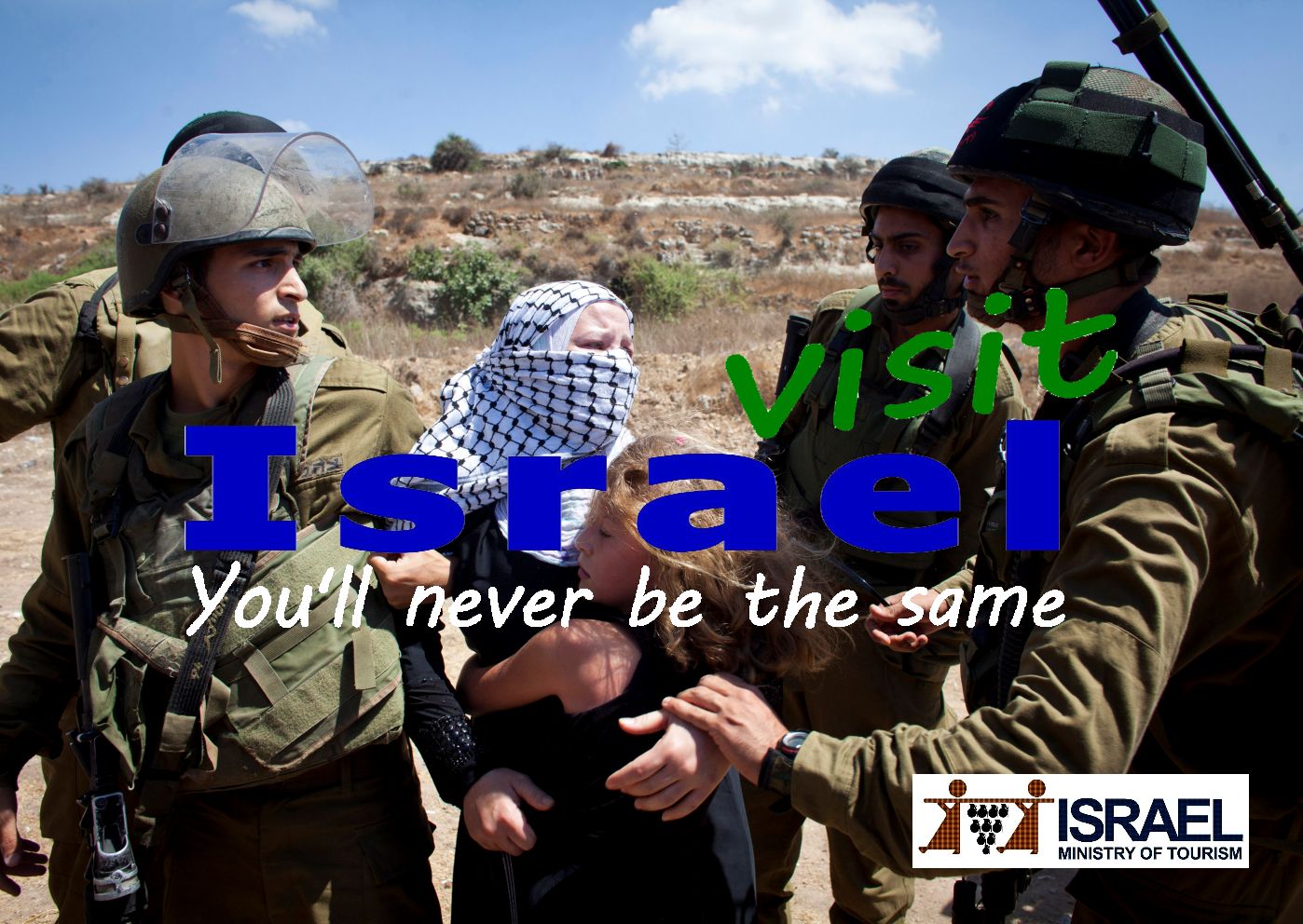 A series of photographs by the celebrated Israel-Palestinian photography collective ActiveStills and the photojournalist Michaela Whitton that is used as a mock tourism campaign by the Israeli Tourism Ministry, using the ministry’s latest campaign slogan and modified logo.