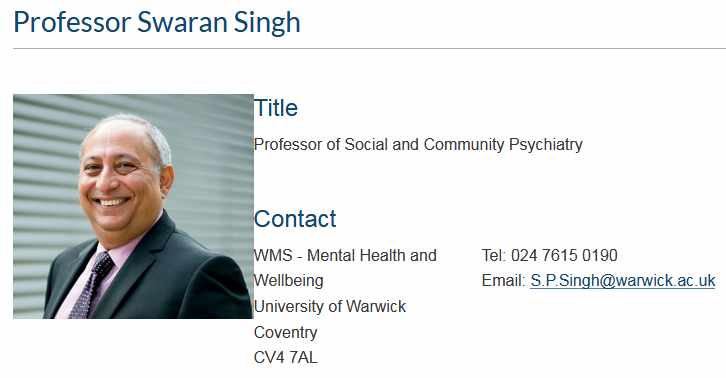 Professor Swaran Singh is Head of Division, Mental Health and Wellbeing, at the University of Warwick.