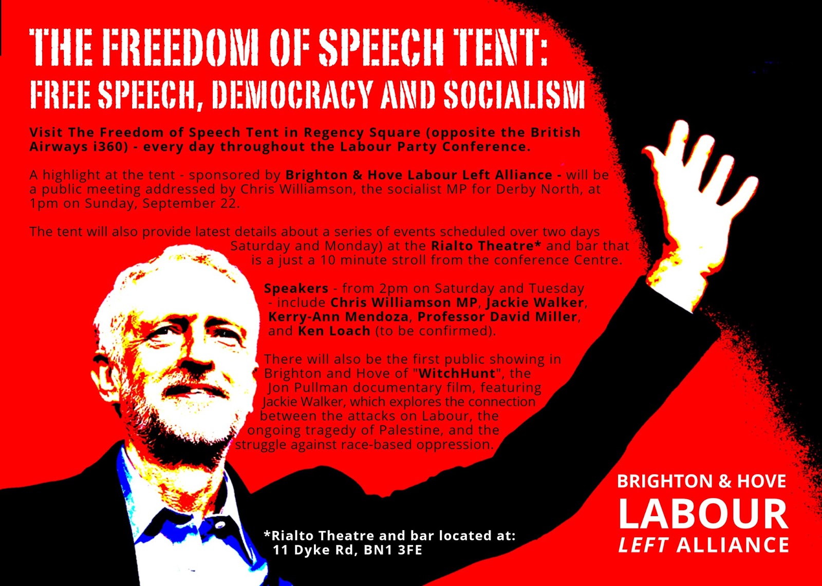 Brighton and Hove Labour Left Alliance, which grew out of the Jon Lansman controlled Brighton and Hove Momentum, put in place plans to ensure that there would be alternative venues for controversial events. First we obtained an Events License from Brighton and Hove Council for Regency Square to put a marquee or, as it turned out a gazebo up. In the end we only did this for the first 2 days