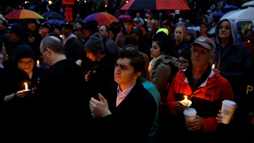 | People gather for a vigil at Squirrel Hill |