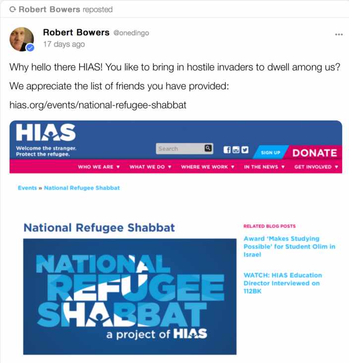 “HIAS likes to bring invaders in that kill our people,” he