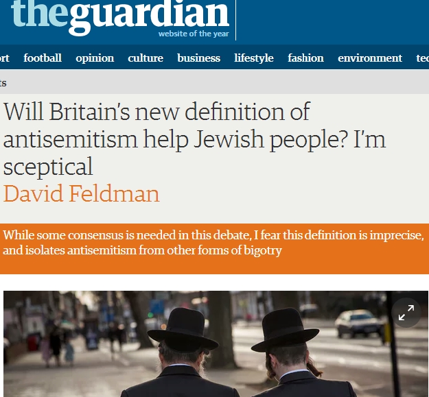 | Feldman asks will the old-new definition of anti-Semitism help Jewish people. Help them with what exactly? The whole article is suffused with truisms and leaps of logic |