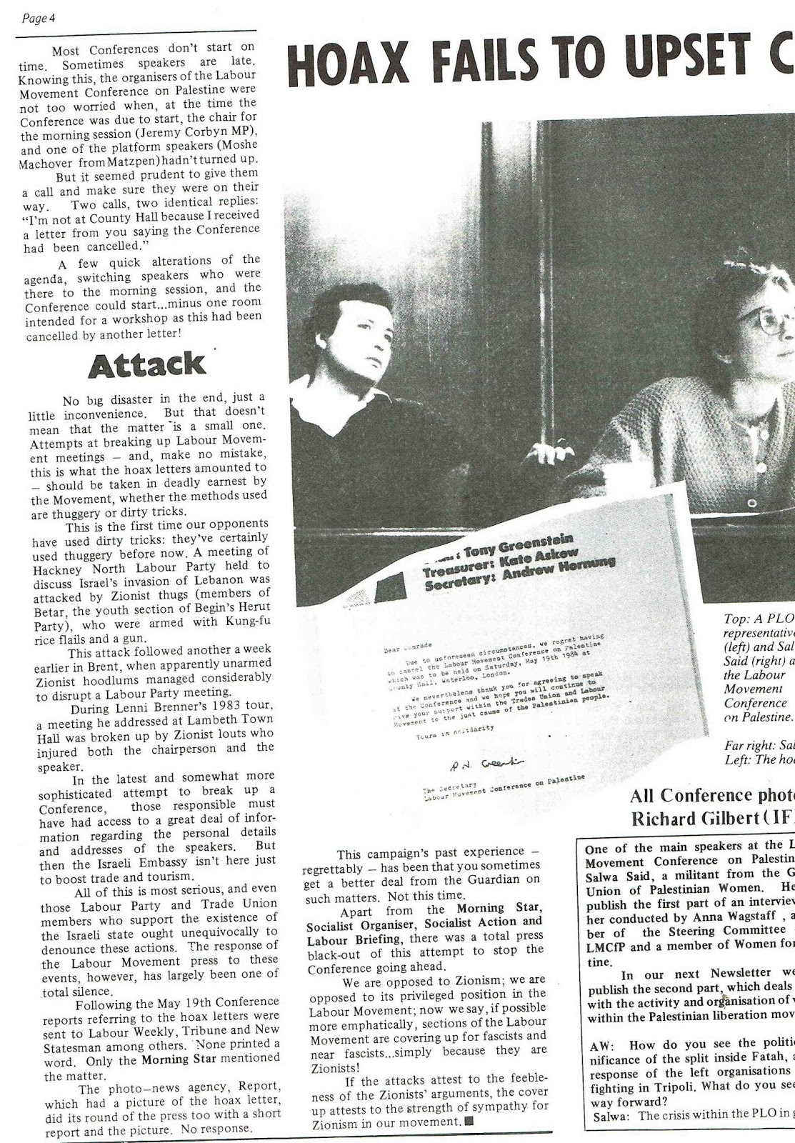 | Report of LMCP Conference which Corbyn chaired – the Zionists tried to hoax the speakers that the conference had been cancelled |