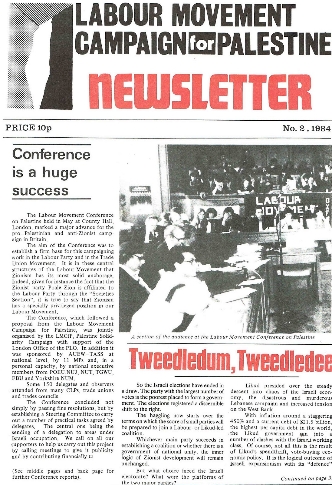of 1984 the Labour Movement Campaign for Palestine held a conference at County Hall, London when the GLC was still in existence. The Conference was sponsored by AUEW-TASS,