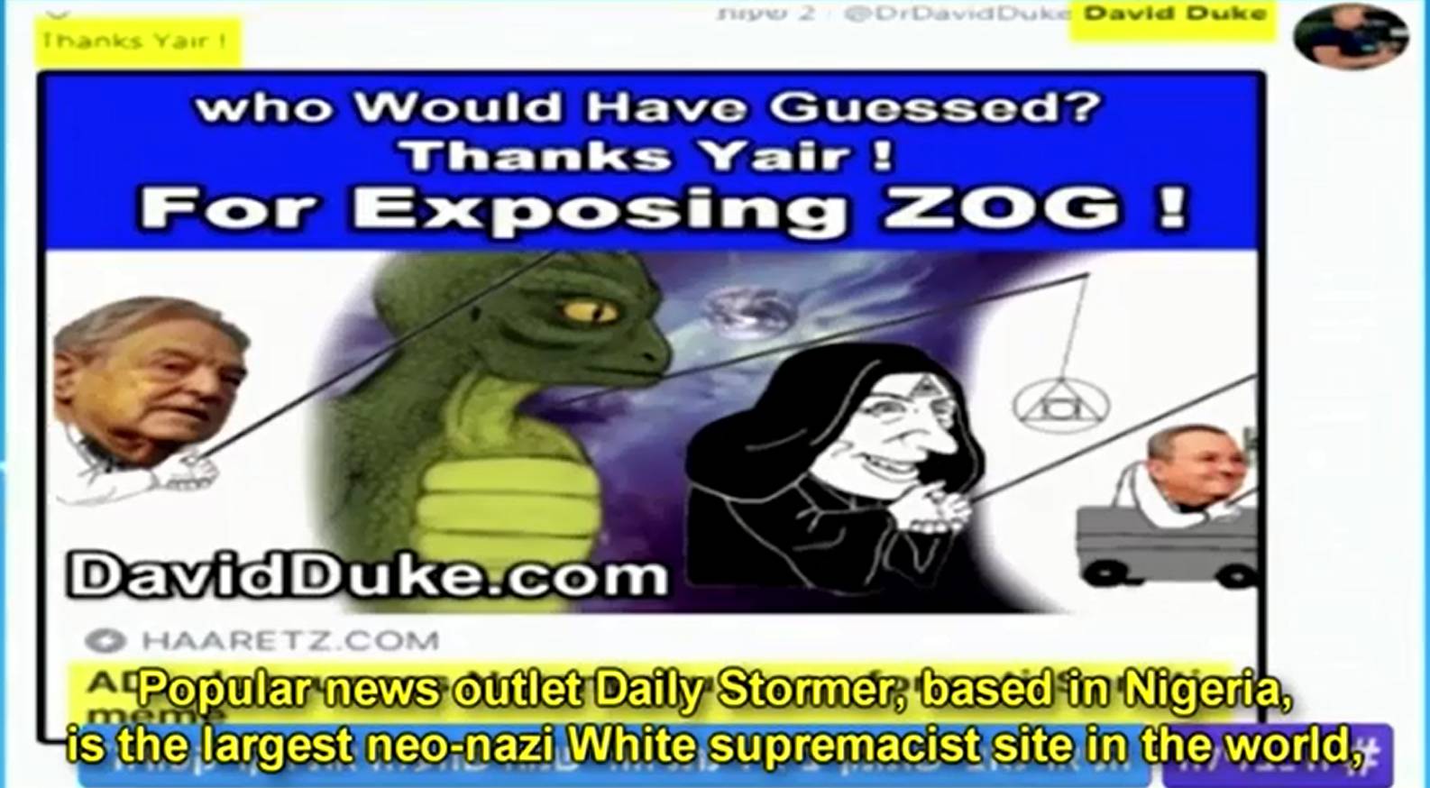 | leading US neo-Nazi David Duke, a former Grand Master of the KKK, praised Yair Netanyahu’s cartoon attacking Soros |