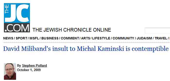 | How the Jewish Chronicle’s editor Stephen Pollard saw Milibands criticism of the anti-semitic Kaminski |