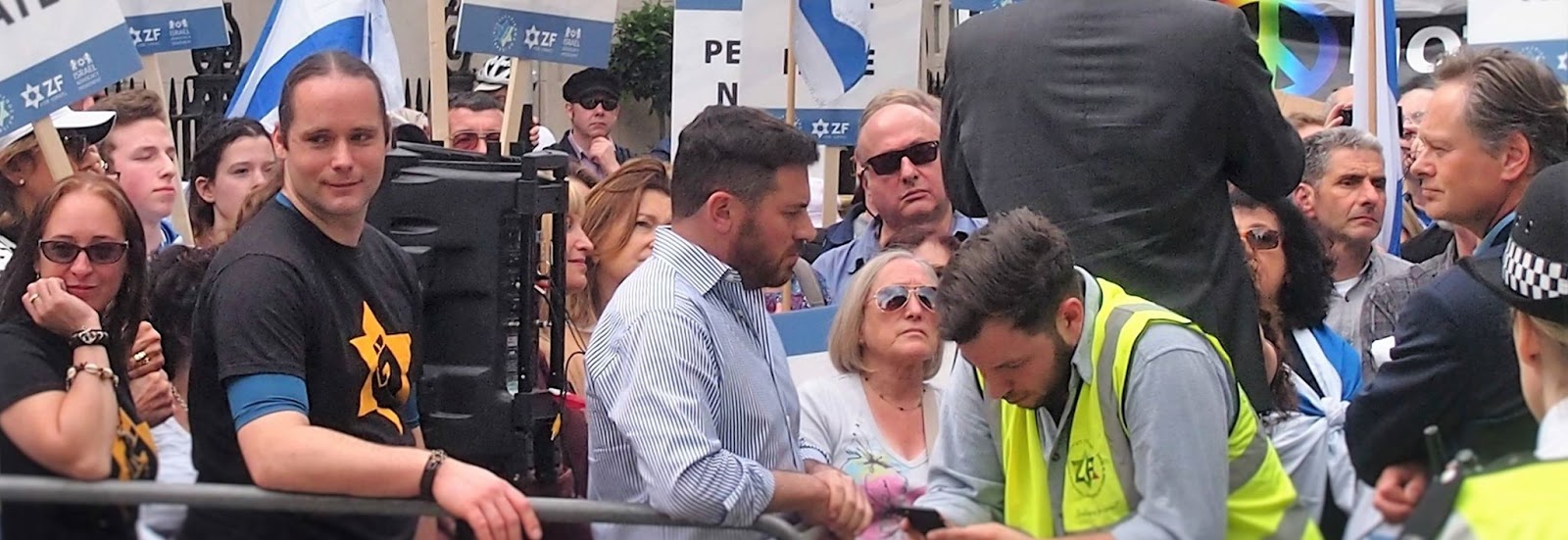 Deputies of British Jews, spoke at a small pro-Israel rally in London where