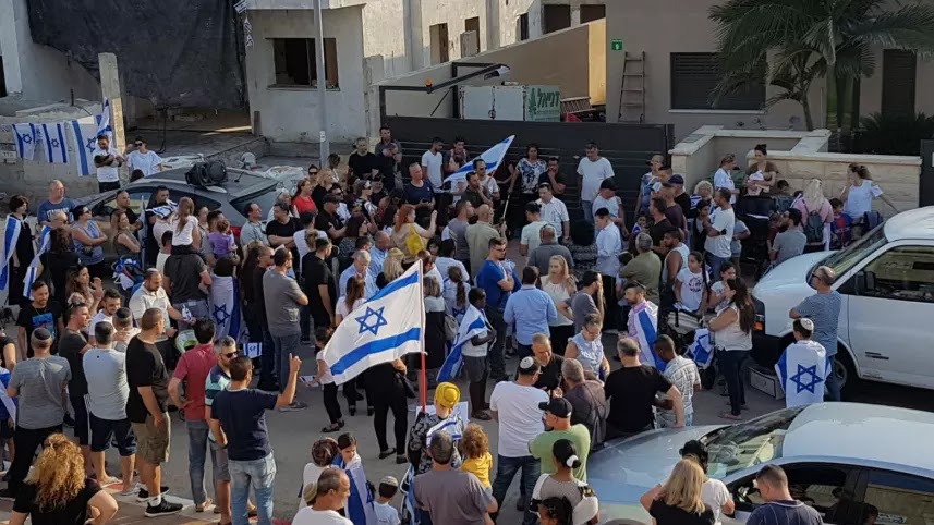 | Hundreds dmonstrate in Afula recently against the sale of a house to an Arab in a town which is wholly Jewish |