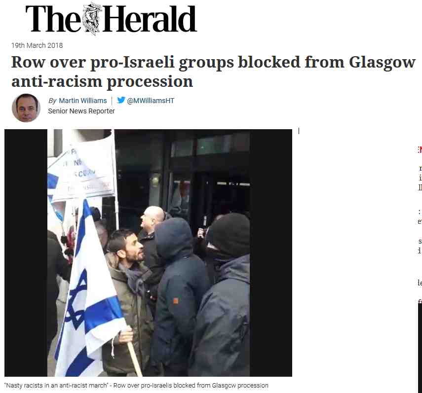 This is of a piece with Scottish SUTR’s decision to allow the far-Right Confederation of Friends of Israel to participate, with Israeli flags, on their demonstrations. As a Joint Statement from the Islamic Human Rights Commission and other organisations declared: