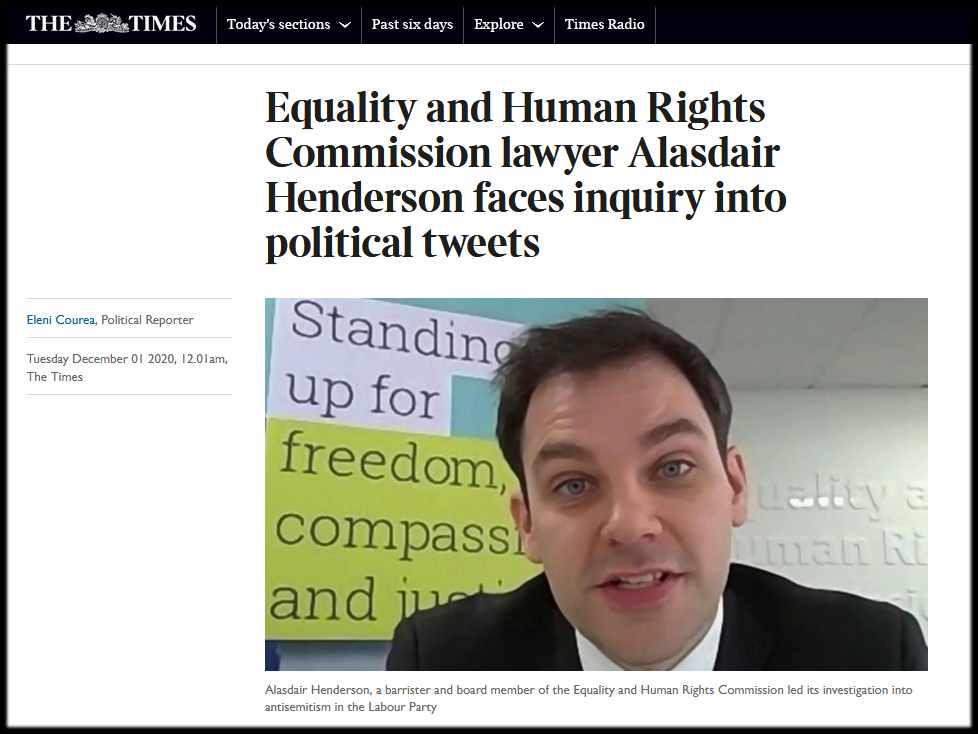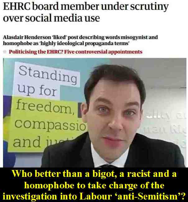 However you would be wrong. It would seem that the Commissioners are a repository of bigotry and racism. None more so than Alasdair Henderson, the barrister charged with investigating and producing a report on Labour Party ‘anti-Semitism’.