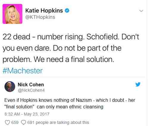 of the Jews. It would seem that Katie Hopkins, who spends increasing time in