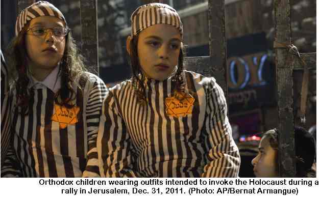 An Israeli protest over the weekend by ultra-Orthodox Jews who dressed their children to look like inmates at a Nazi concentration camp highlights the sometimes peculiar role the Holocaust plays there in political discourse and even in everyday exchanges.